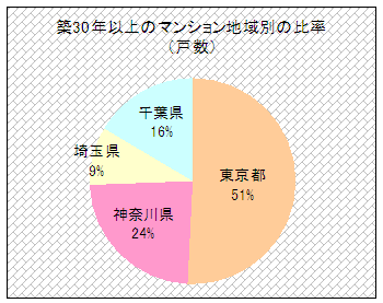 | 築後30年以上のマンションに関する分析データ(地域別の比率) |